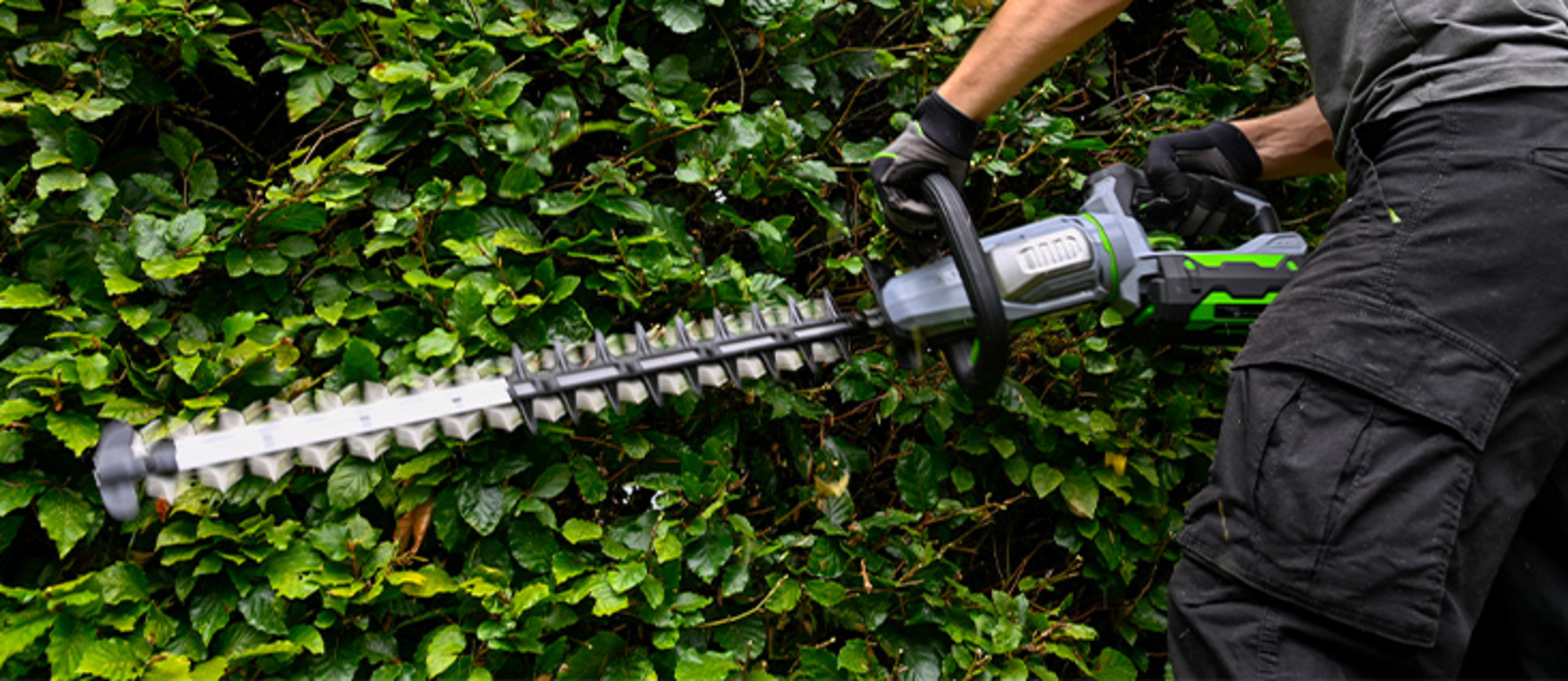 Die EGO Power+ HT5110E liefert präzise, kraftvolle Schnittleistung für Zierhecken. Die 51 cm langen, lasergeschnittenen Messer mit 33 mm Schnittkapazität sorgen für saubere Schnitte und fördern ein gesundes Nachwachsen.